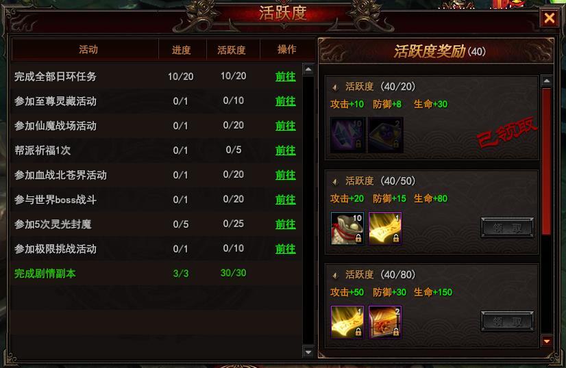 完成游戏内指定的活跃度任务,可获得大量奖励,活跃度任务每日重置。